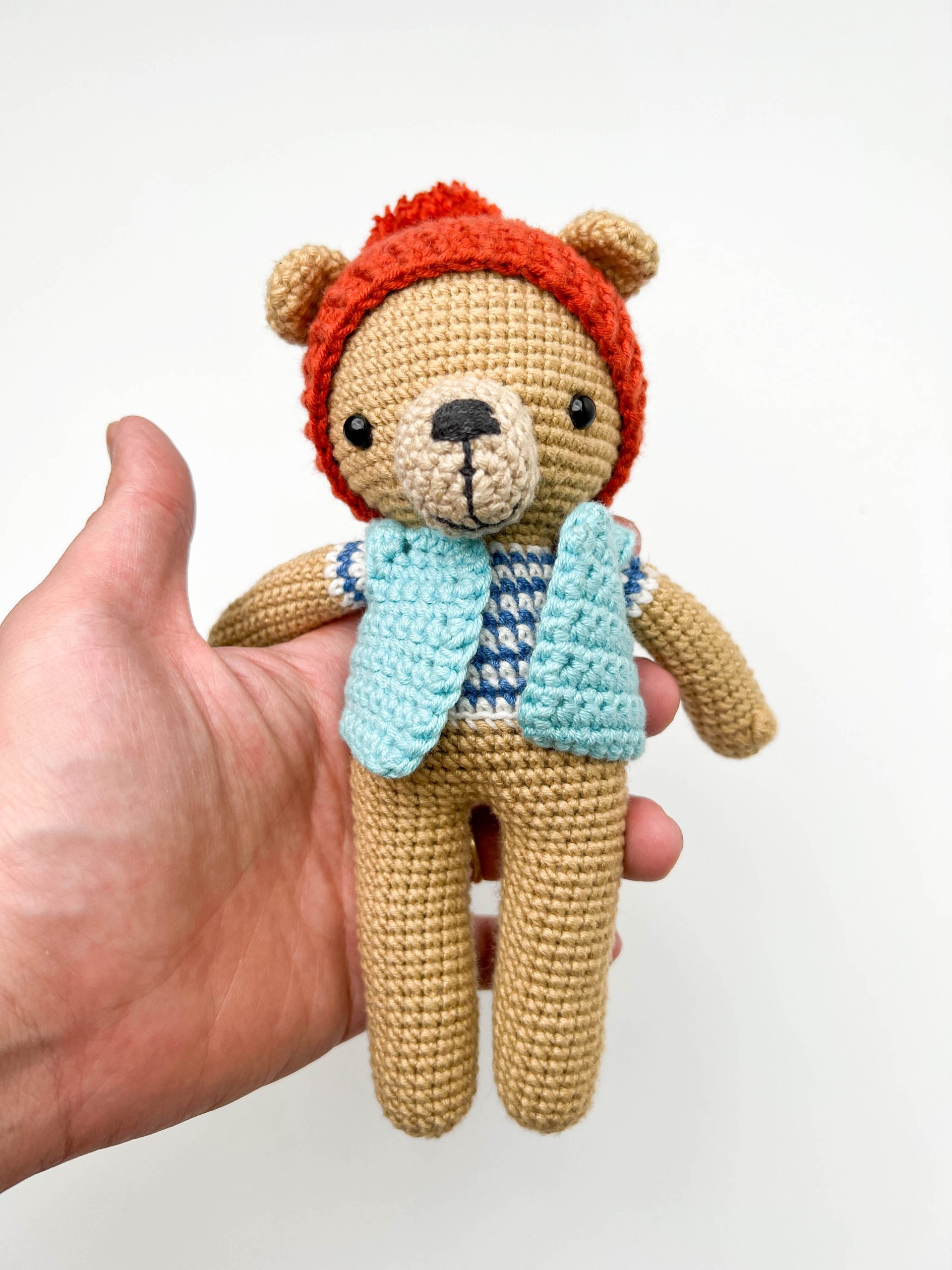 Gấu mũ len – Thú bông đồ chơi 100% thủ công. Sản phẩm phù hợp, an toàn với trẻ em do các vật liệu đều thân thiện với sức khỏe, không có các chi tiết nhỏ hay sắc nhọn. Gấu mũ len được móc thủ công hoàn toàn bằng tay bởi những người thợ giàu kinh nghiệm, form dáng chắc chắn, các chi tiết tinh xảo, màu sắc có thể tùy biến cá nhân hóa theo sở thích.