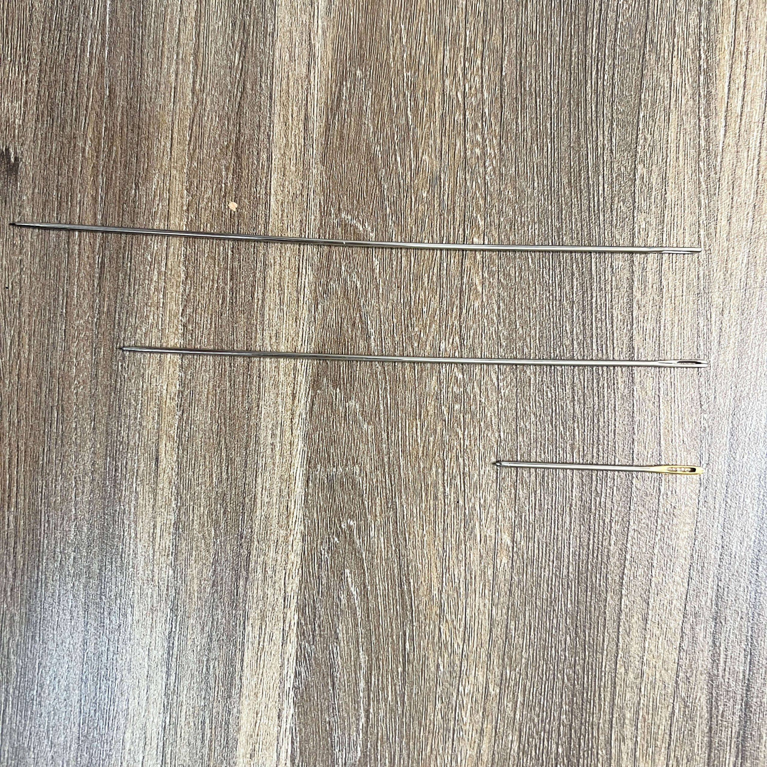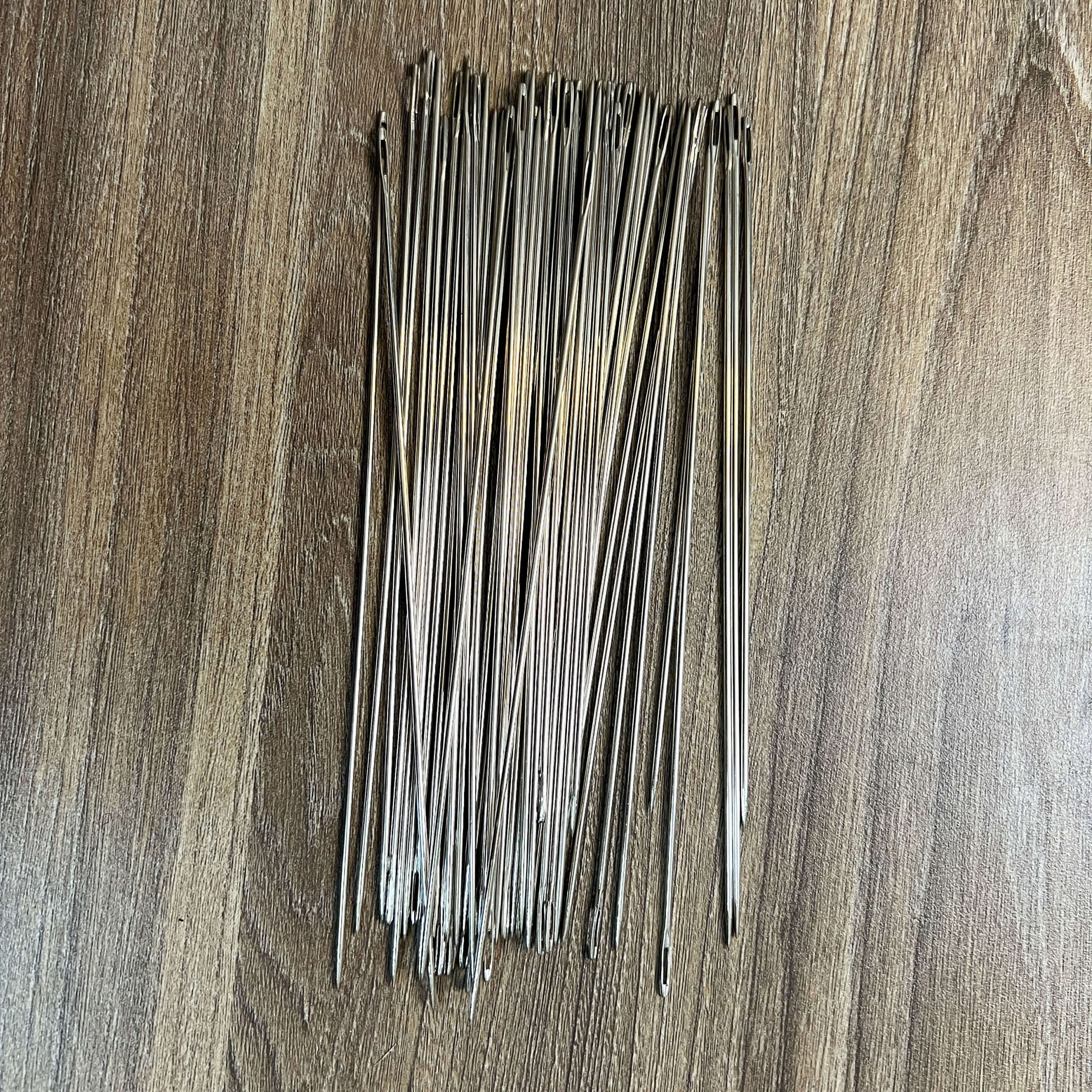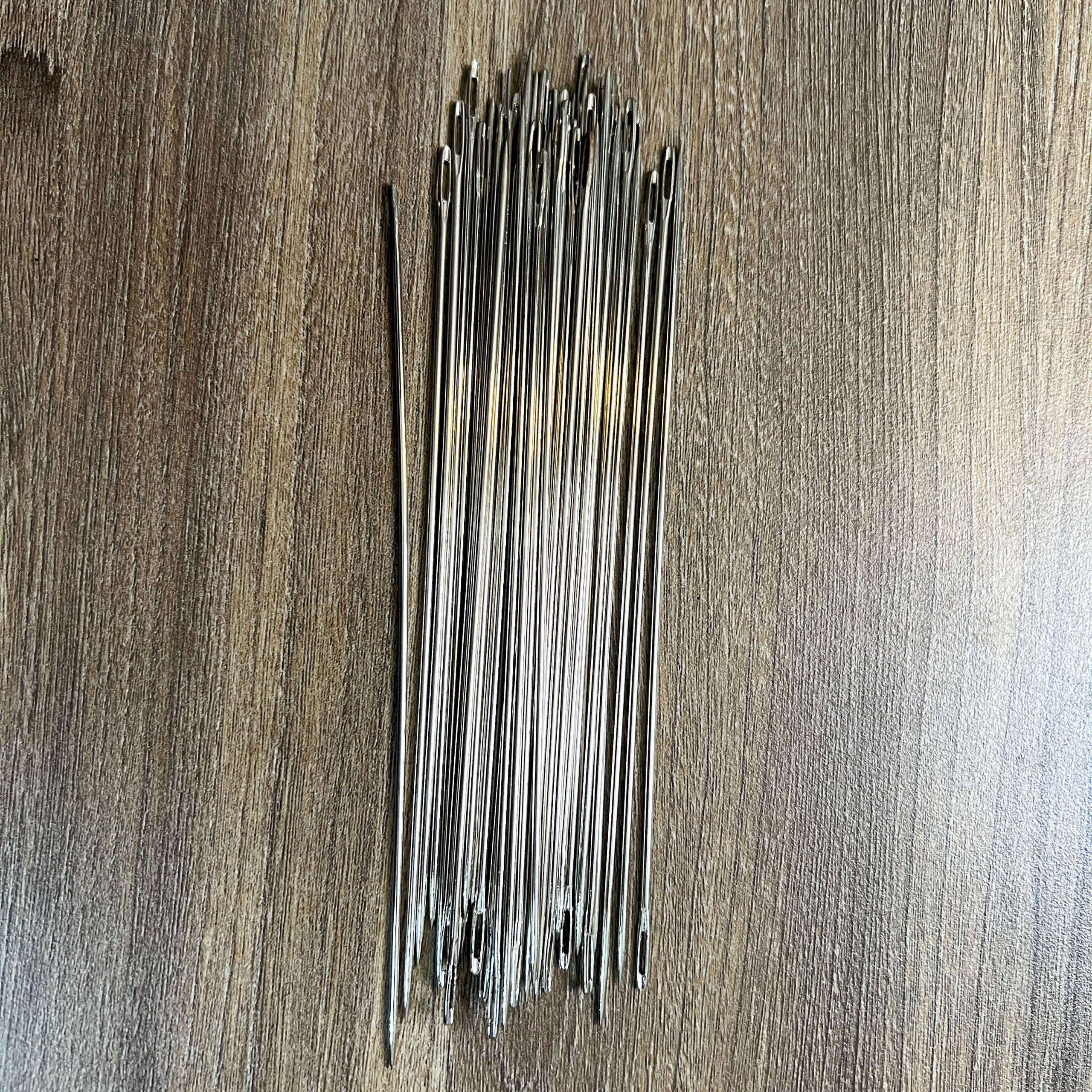 Kim khâu dài chất liệu thép không gỉ giúp khâu các sản phẩm từ len có kích thước lớn. Kim khâu dài có lỗ xỏ len to, dễ dàng sử dụng.