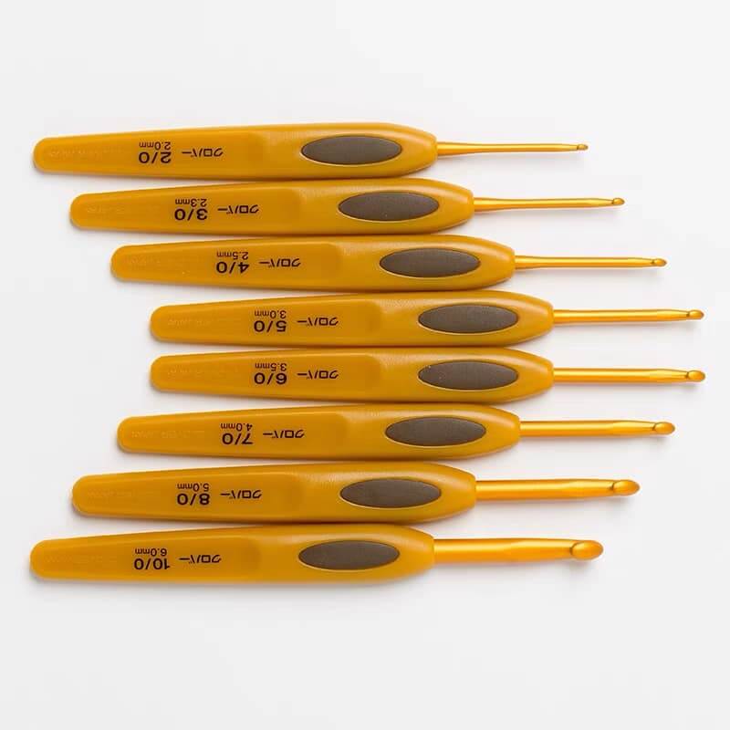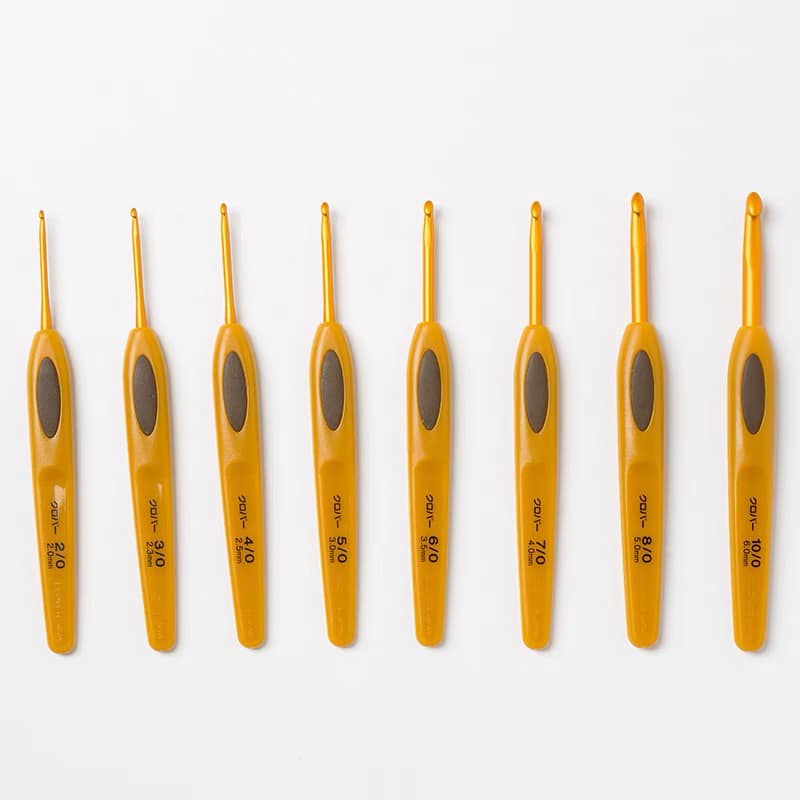 Kim móc nội địa Nhật Bản Clover được thiết kế chuẩn và chính xác từ kim đến tay cầm giúp không mỏi tay và trượt khi móc liên tục. Kim móc nội địa Nhật Bản Clover nhẹ và giữ thăng bằng tốt, tay cầm bằng ABS cùng đệm cao su nhỏ hình oval, bề ngang thân đủ rộng giúp ngón tay bạn được thả lỏng khi móc liên tục. Các size lớn của bộ Clover móc len (từ size 2mm trở lên) đầu kim bằng Aluminum, bám len tốt. Các size nhỏ của bộ Clover móc chỉ (từ size 1.75mm trở xuống) đầu kim bằng Steel, chắc chắn và chính xác, phù hợp các dòng chỉ nhỏ. Kim móc Clover được thiết kế đồng bộ với gam màu vàng nâu, số in to, dễ nhìn.