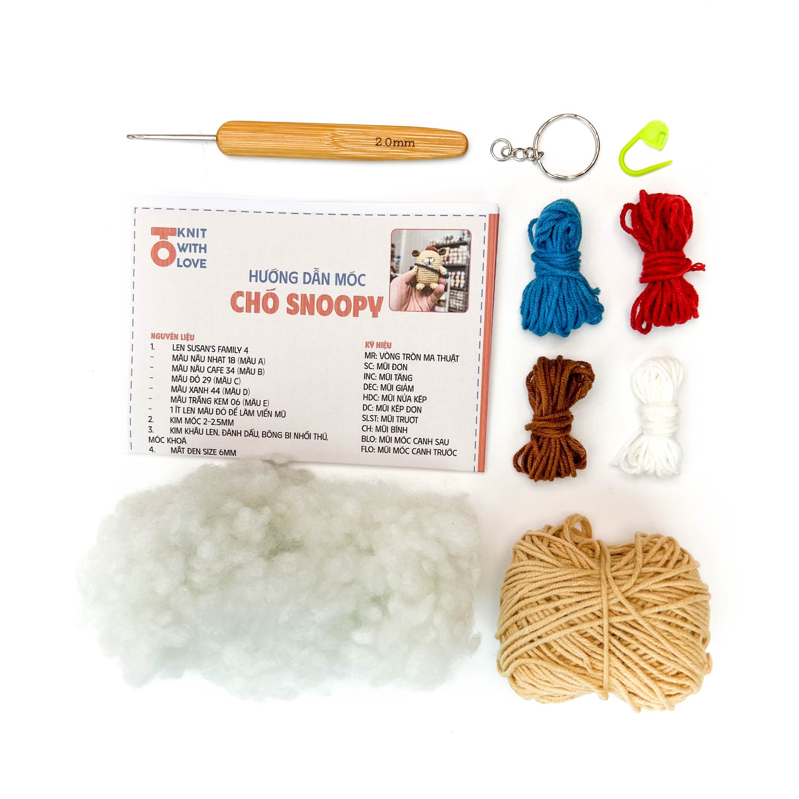 Set nguyên liệu móc Chó Snoopy là bộ nguyên liệu và dụng cụ móc len. Set nguyên liệu móc Chó Snoopy phù hợp với các bạn đang tập móc thú bông, muốn tham gia 1 bộ môn nghệ thuật để giải trí, xả stress, luyện tập sự khéo léo và độ tập trung hoặc muốn tự làm 1 món quà tặng cho người thân, bạn bè. Set nguyên liệu móc Chó Snoopy có thể tùy biến màu sắc theo sở thích của bạn.
