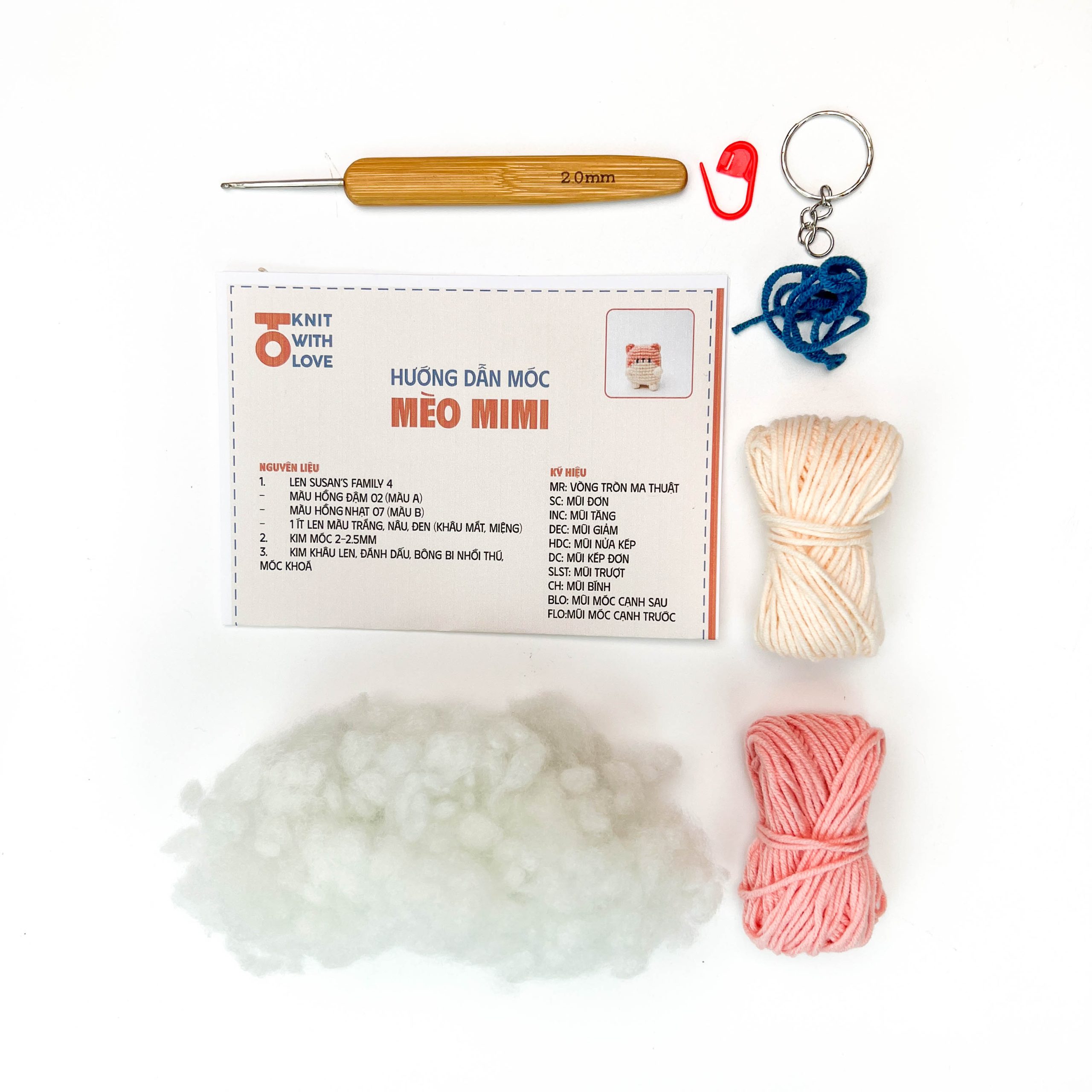 Set nguyên liệu móc Mèo Mimi là bộ nguyên liệu và dụng cụ móc len. Set nguyên liệu móc Mèo Mimi phù hợp với các bạn đang tập móc thú bông, muốn tham gia 1 bộ môn nghệ thuật để giải trí, xả stress, luyện tập sự khéo léo và độ tập trung hoặc muốn tự làm 1 món quà tặng cho người thân, bạn bè. Set nguyên liệu móc Mèo Mimi có thể tùy biến màu sắc theo sở thích của bạn.