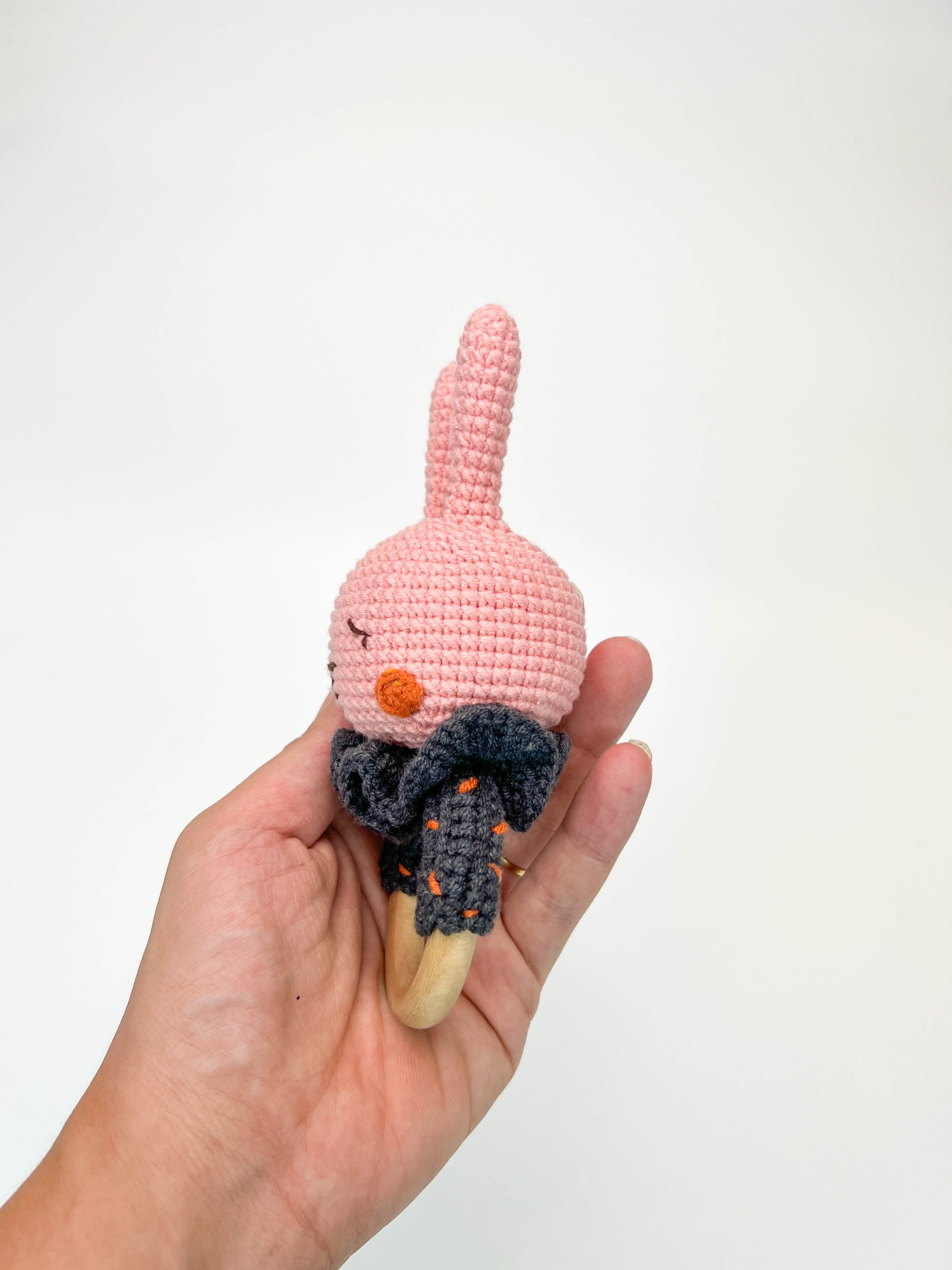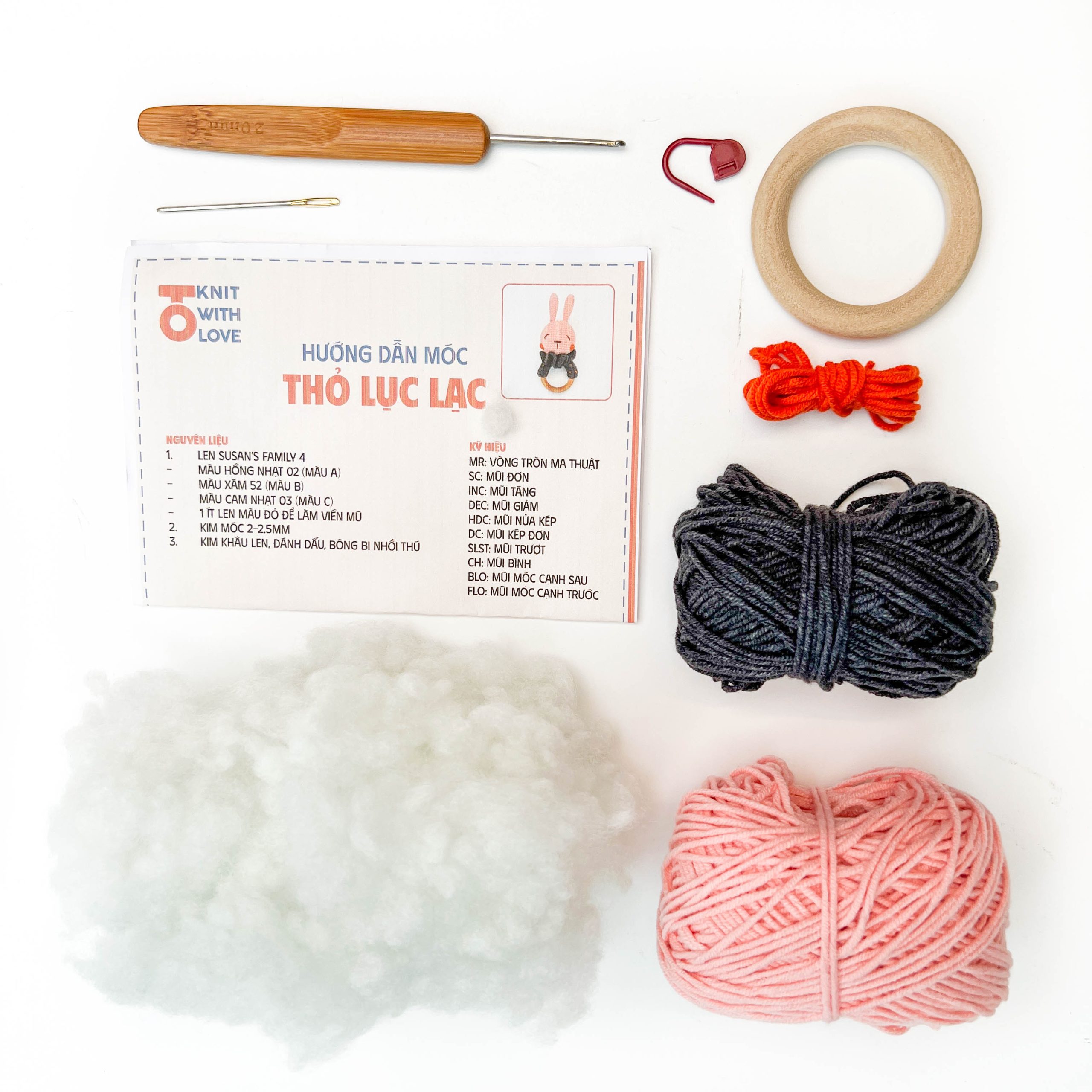 Set nguyên liệu móc Thỏ lục lạc là bộ nguyên liệu và dụng cụ móc len. Set nguyên liệu móc Thỏ lục lạc phù hợp với các bạn đang tập móc thú bông, muốn tham gia 1 bộ môn nghệ thuật để giải trí, xả stress, luyện tập sự khéo léo và độ tập trung hoặc muốn tự làm 1 món quà tặng cho người thân, bạn bè. Set nguyên liệu móc Thỏ lục lạc có thể tùy biến màu sắc theo sở thích của bạn.