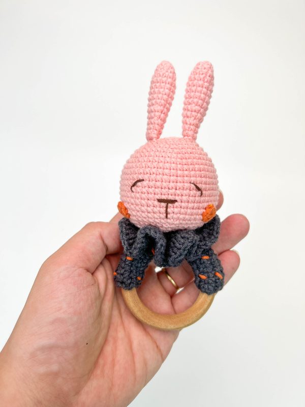Thỏ lục lạc – Thú bông đồ chơi 100% thủ công. Sản phẩm phù hợp, an toàn với trẻ em do các vật liệu đều thân thiện với sức khỏe, không có các chi tiết nhỏ hay sắc nhọn. Thỏ lục lạc được móc thủ công hoàn toàn bằng tay bởi những người thợ giàu kinh nghiệm, form dáng chắc chắn, các chi tiết tinh xảo, màu sắc có thể tùy biến cá nhân hóa theo sở thích.